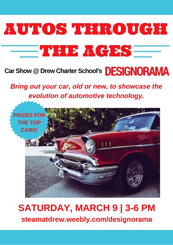 - Design-o-Rama Call for Volunteers – We are seeking participants to support our theme of SHELTER. You are receiving this email because we think you might be interested in participating or you might know someone that would. We would love to have professions and hobbyist show off what they do and host activities that involve attendees in the process of making something. We will also feature an auto show–AUTOS THROUGH the AGES. Please direct interested folks to our website: http://steamatdrew.weebly.com/designorama.html.
