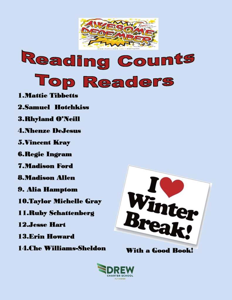 - The Drew Charter Debate Team for several speaker awards and for being awarded 1st place Sweepstakes winner in the January Tournament!