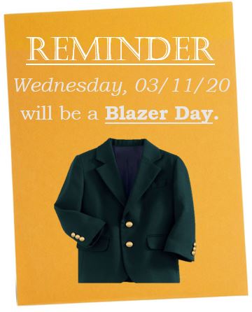 Blazer Days are Required for Special Events & will occur at least once a month**