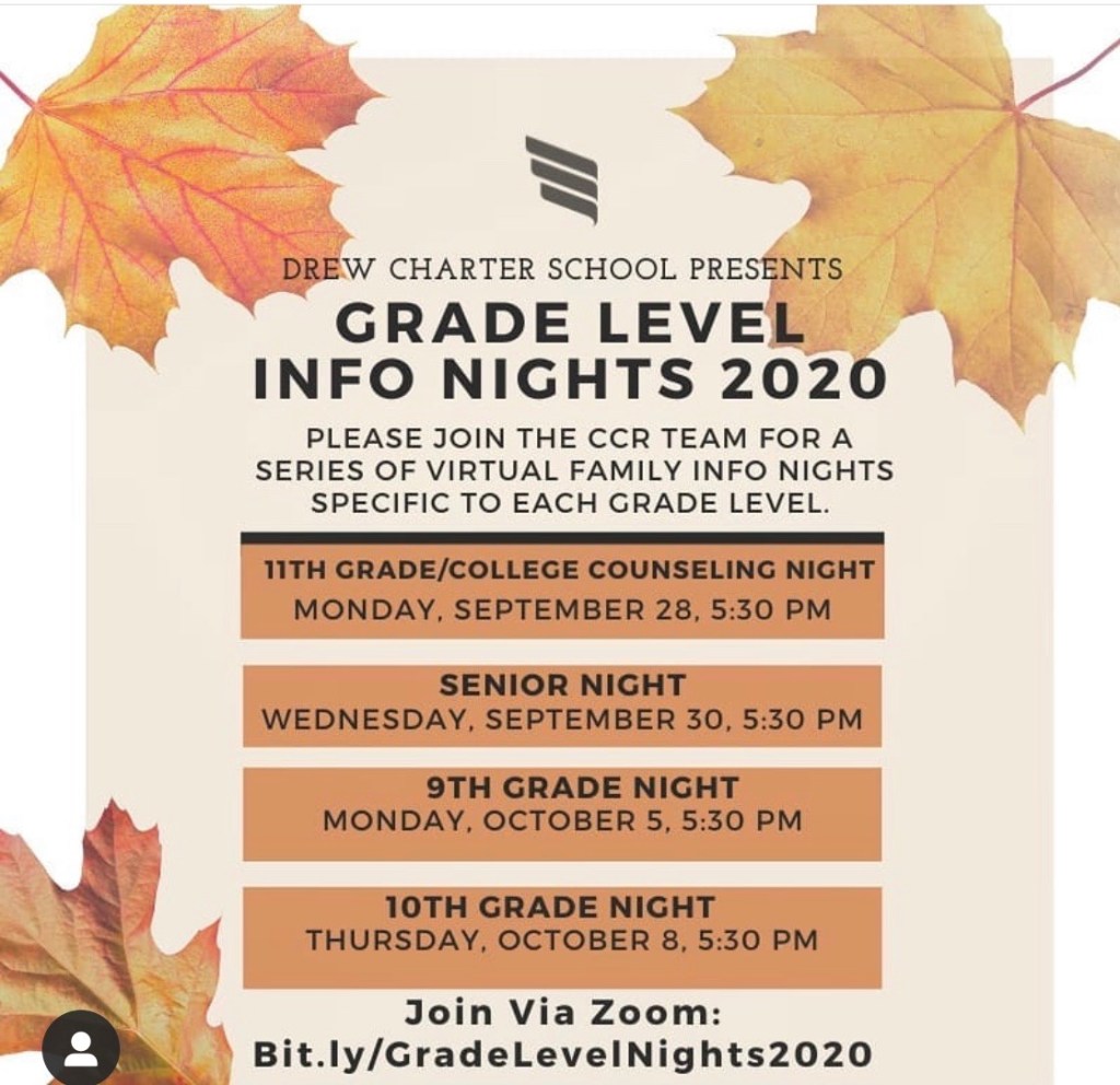 In preparation for 9th grade level night on October 5th, we distributed virtual kits to all 9th graders on October 1st and October 2nd. We hope all students and families enjoyed their kits, and we look forward to seeing you Monday, October 5th for our program. If you have any questions or concerns, please email rachel.weaver@drewcharterschool.org or kendrick.myers@drewcharterschool.org