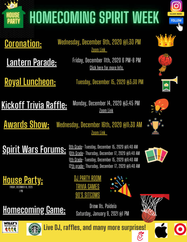 - 1pm: Homecoming Game [Paideia] – This event will be streamed