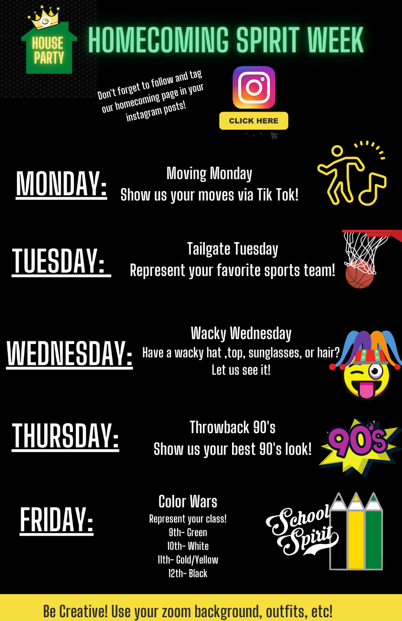 - Week of 12/14 -12/18: “House Party” Homecoming [1PM-4PM]