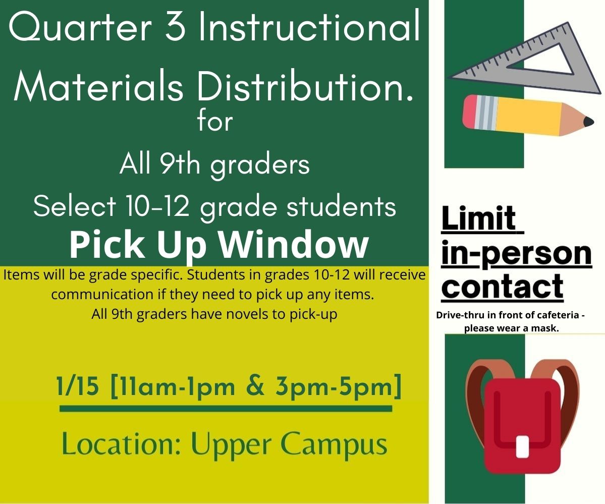 | 2:00 – 5:30 | [Please note the time change] Nutrition pick up – Location: Lower campus [Drew Elementary Campus] |