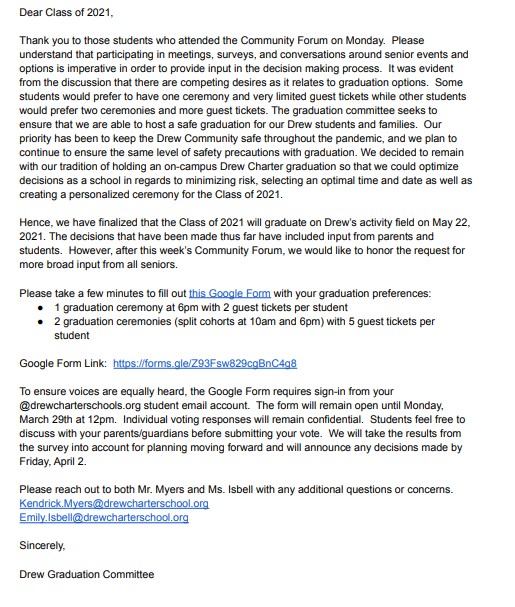 Please take a few minutes to fill out this Google Form with your graduation preferences: