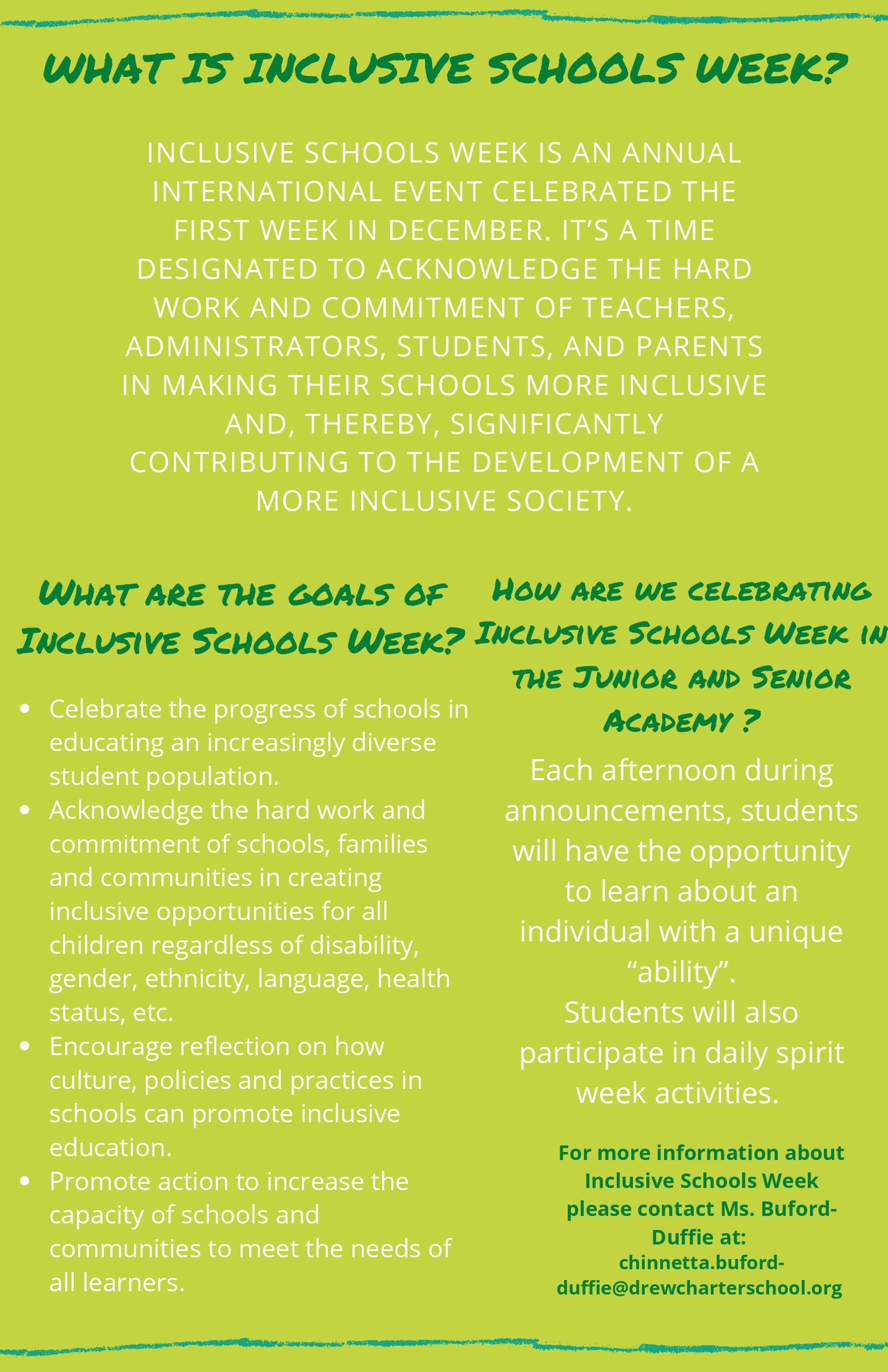 INCLUSIVE WEEK Theme Participation: Students can wear Drew Spirit Wear for the Day