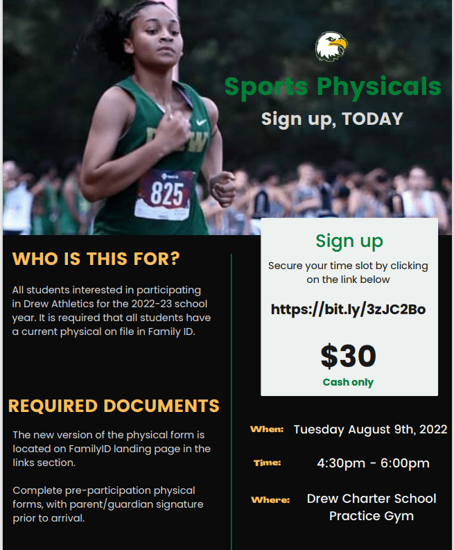 | Sports Physical (Tuesday, 8/09/2022) | 4:30 pm – 6:00 pm |