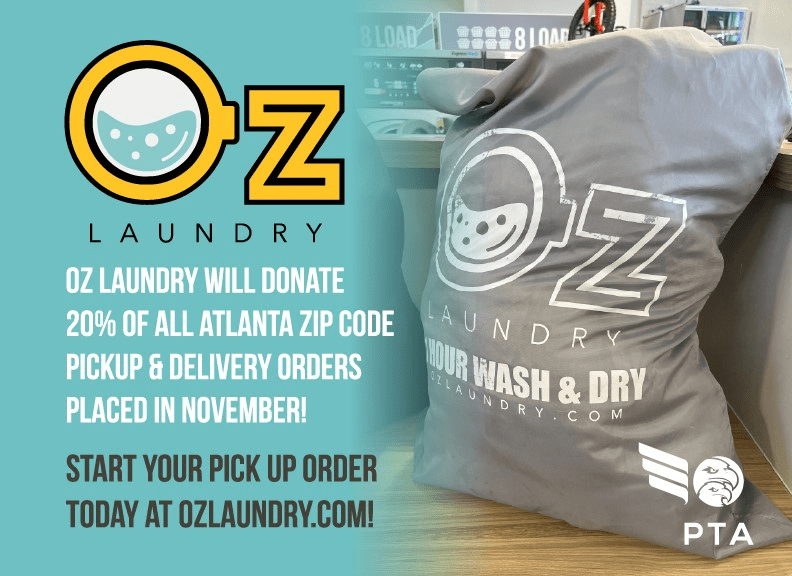 Are you interested in taking a household chore off your to-do list AND supporting the Drew PTA? Try Oz Laundry’s pickup and delivery laundry service, and they will donate a portion of their November sales to the PTA! As a bonus, you’ll be supporting a business owned by a Drew family. Start your order today at ozlaundry.com.