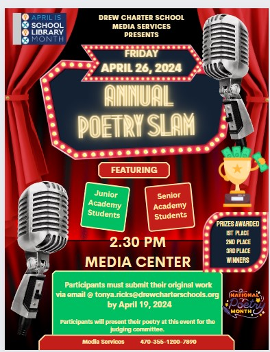 Poetry SLAM submission due April 19th Event April 26th