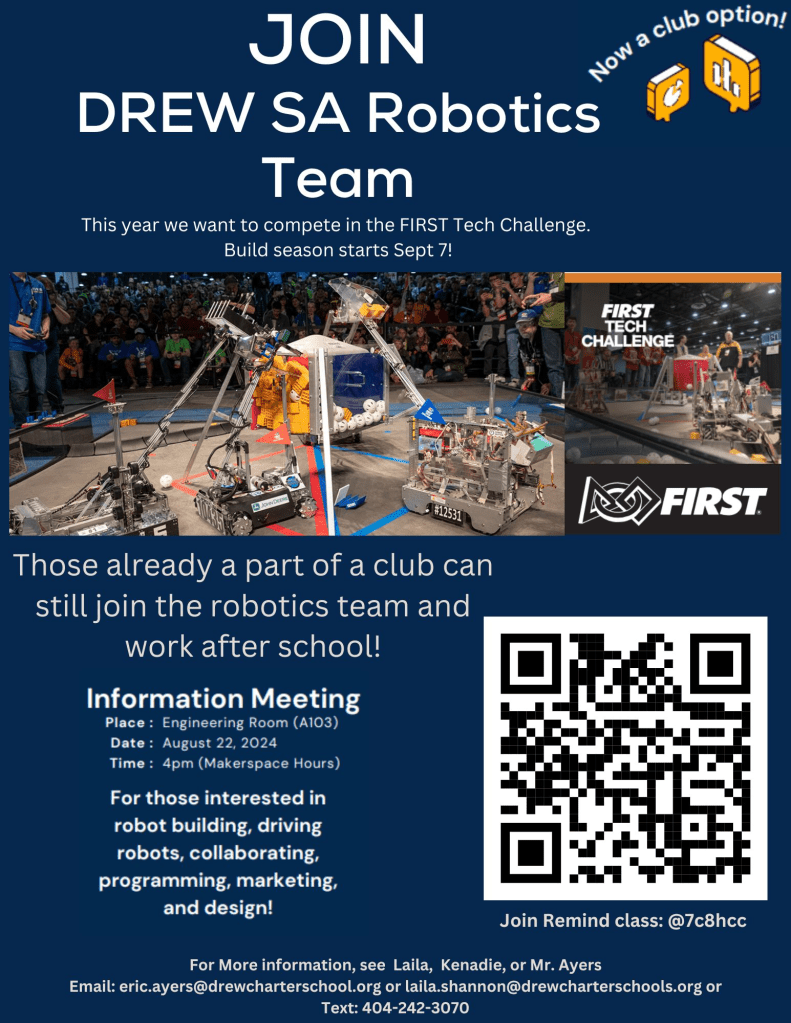 Announcing the formation of a Drew Senior Academy Robotics Team!