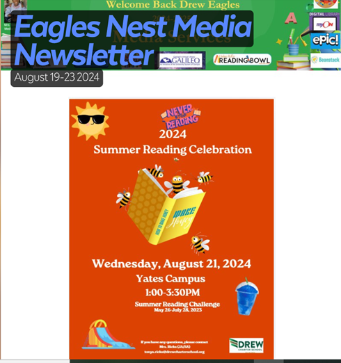 | Counseling Resources, see information below: Dean of CCR: rachel.weaver@drewcharterschool.org 9th and 11th: takiedra.white@drewcharterschool.org 10th and 12th: rob.richardson@drewcharterschool.org Click here to learn more about IEP and 504: MTSS/504 Chronicles Vol 1, Issue 5 Media Center Resources, see information below: Google Classroom Code – 7iy2jsh [Students only have access] Maker Space Activities : Checkout the STEAM Initiatives/Opportunities, visit the calendar on their page by following this link –> bit.ly/DrewMAKE |