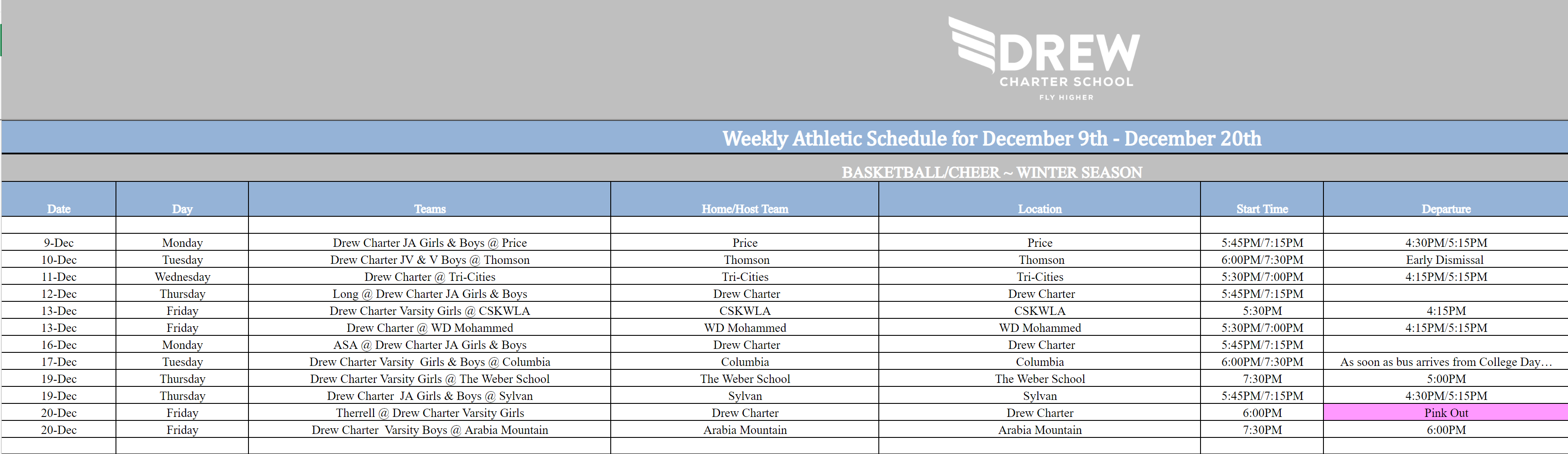Athletics Schedule