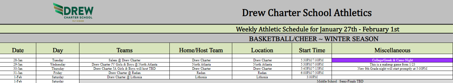| Monday 1/27 | Tuesday 1/28 | Wednesday 1/29 | Thursday 1/30 | Friday 1/31 |
