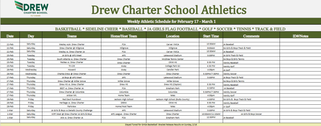 Athletics Schedule