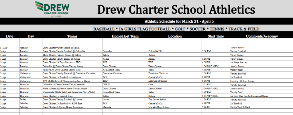 Athletics Schedule
