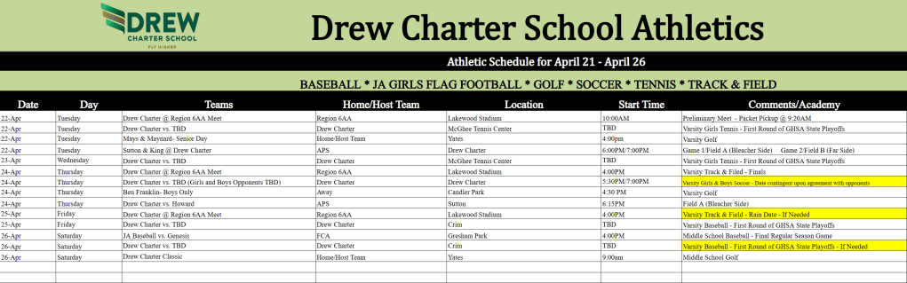 - Chaperones, students, staff, and Drew community for your resilience and tremendous support this week!